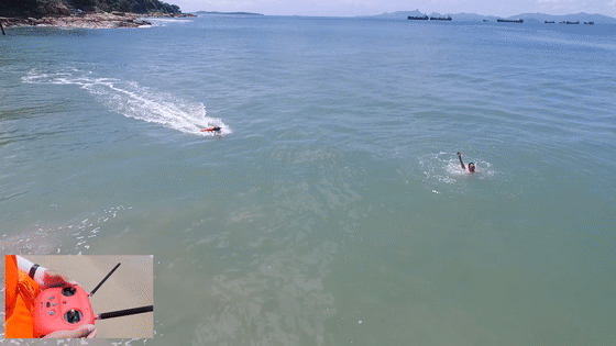 R1救援機器人配有升級后的高速電池,能通過推進器以最高7米每秒的速度到達落水者身邊,500米的距離,不到1分鐘即可到達。