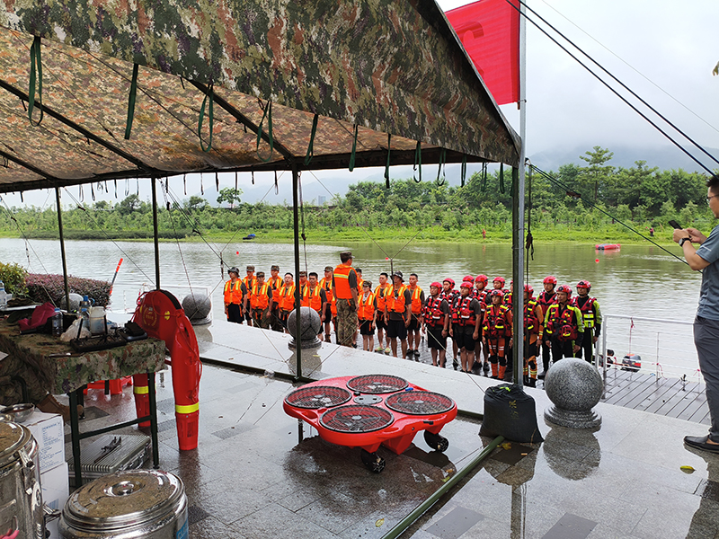 當(dāng)演練場景設(shè)置為落水者被困于洪水圍困的孤島或復(fù)雜水域中央,傳統(tǒng)船只難以快速接近時,F(xiàn)R02飛行救生艇的登場,帶來了革命性的解決方案: