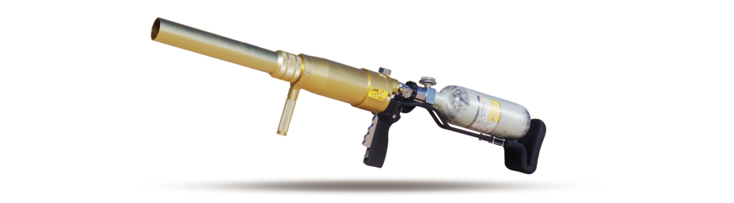 1、使用壓縮空氣,工作壓力:8.5MPa,重量7.5KG(凈重不含底座),拋射質量1.8KG