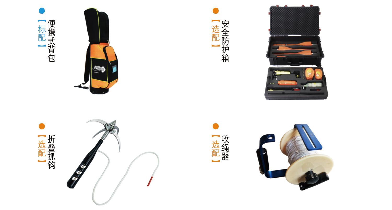 3、拋繩規格:C3mm×250/180/150M,三種拋繩拉力不小于2000N,救援彈、救援繩及水用保護套可反復使用