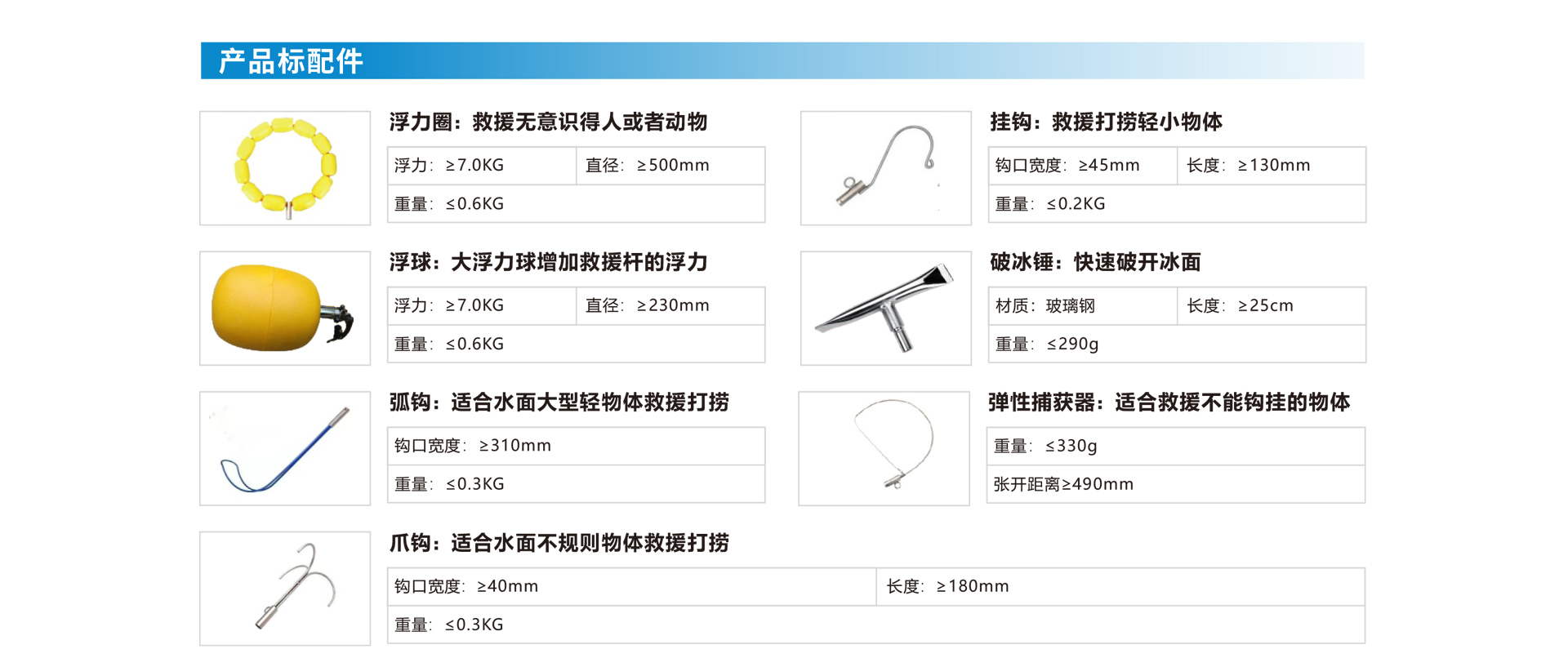 · 救援桿(18m):在岸上或船上開展遠(yuǎn)距離安全施救,也可用來打撈漂浮物時(shí)使用