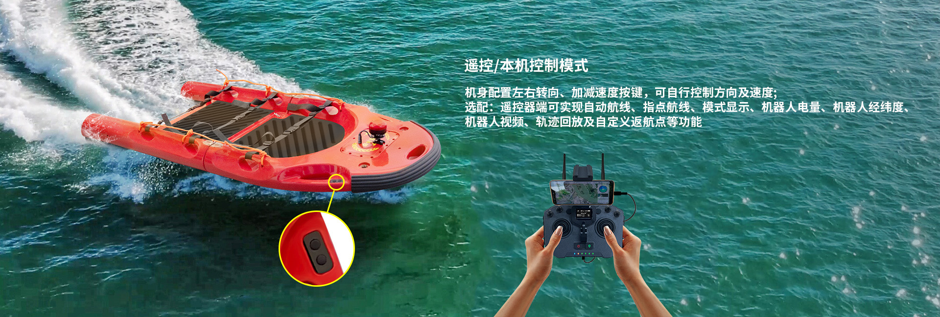 本機(jī)操控:機(jī)身配置左右轉(zhuǎn)向、加減速度按鍵,可自行控制方向及速度;