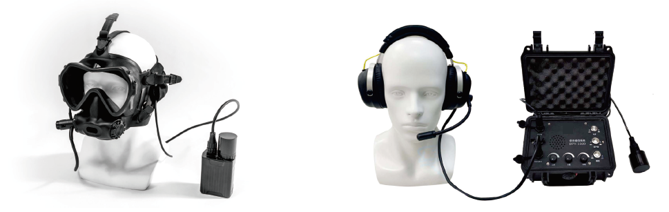 - 潛水員單元。由水下通信主機、潛水全面罩、耳機話筒套件和充電配件組成,潛水員單元采用A SA 抗沖改性樹脂材料制成,結構堅固、輕便耐用。