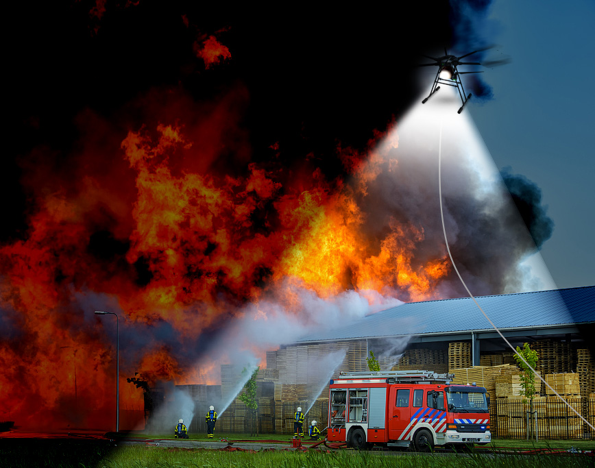 照明無人機(jī)具有 LED 光源、高清無線圖傳、閃爍警示等功能