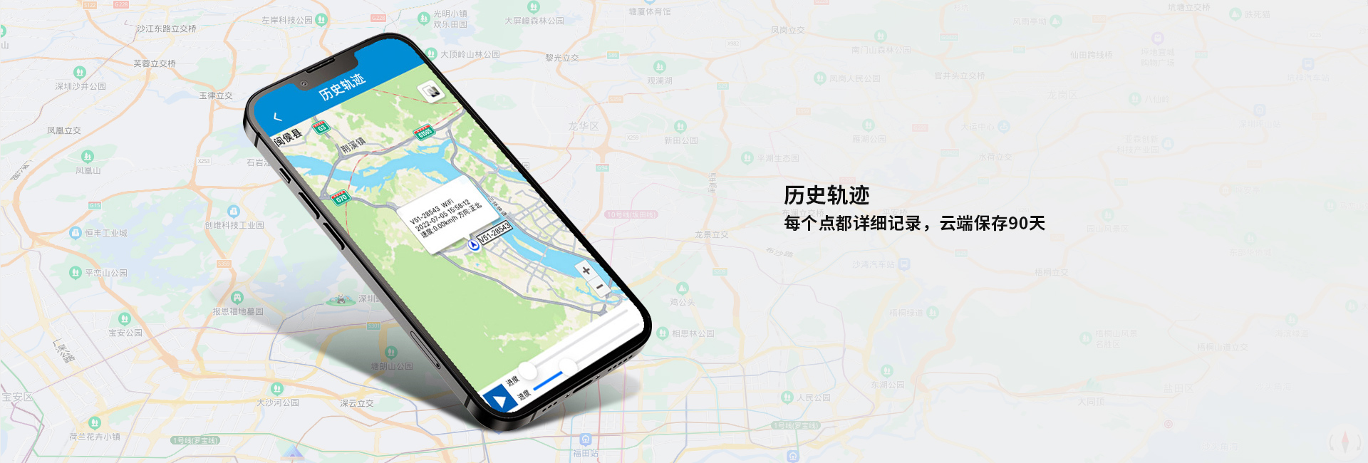 · 歷史軌跡:每個(gè)點(diǎn)都詳細(xì)記錄,云端保存90天